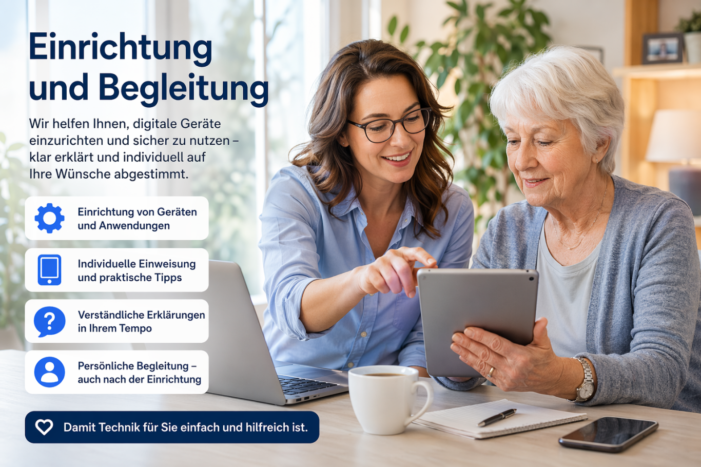 Hilfe bei der Einrichtung und Nutzung digitaler Anwendungen und Geräte. Klar erklärt und individuell abgestimmt.